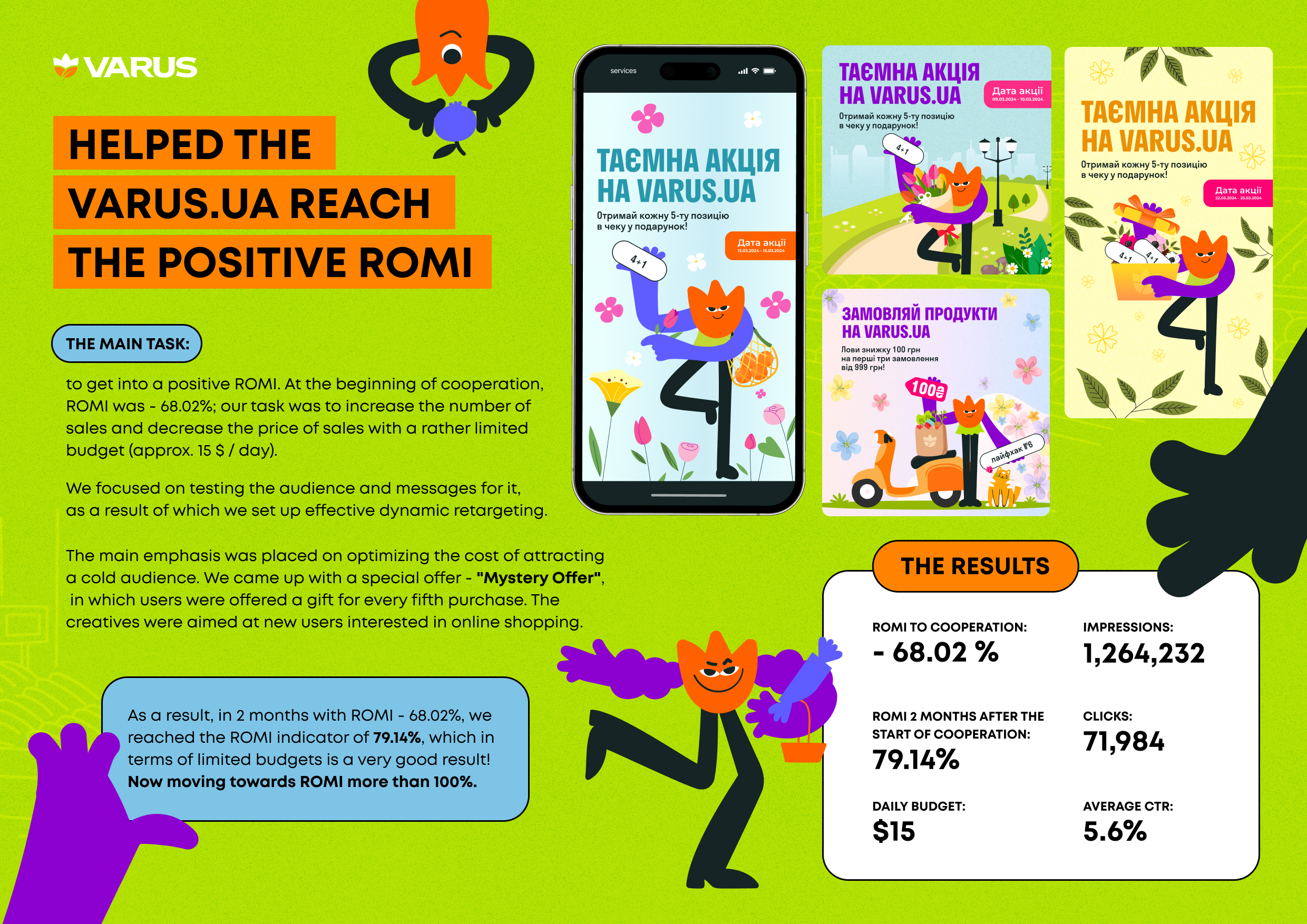 Креативи та віжуали ― це важливо для просування, але для вирішення складних маркетингових завдань потрібна якісна поглиблена аналітика та коректура реклами. Яскравий приклад ― кейс нашої співпраці з VARUS.UA