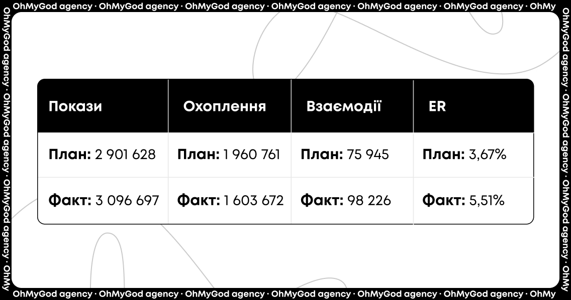 У результаті нам вдалось досягти поставлених цілей та перевиконати план по залученню авдиторії на 29+%. Інфлюенсерки також чудово впорались із викликом, та не лише оновили власний стиль, а й підсилили серед своєї авдиторії сприйняття продуктів Syoss Intense Plex Metallic як простих у використанні вдома та водночас професійних і безпечних для волосся засобів. Нативні відео із використанням продуктів точно надихнули підписниць на зміни іміджу та перевтілення із SYOSS.