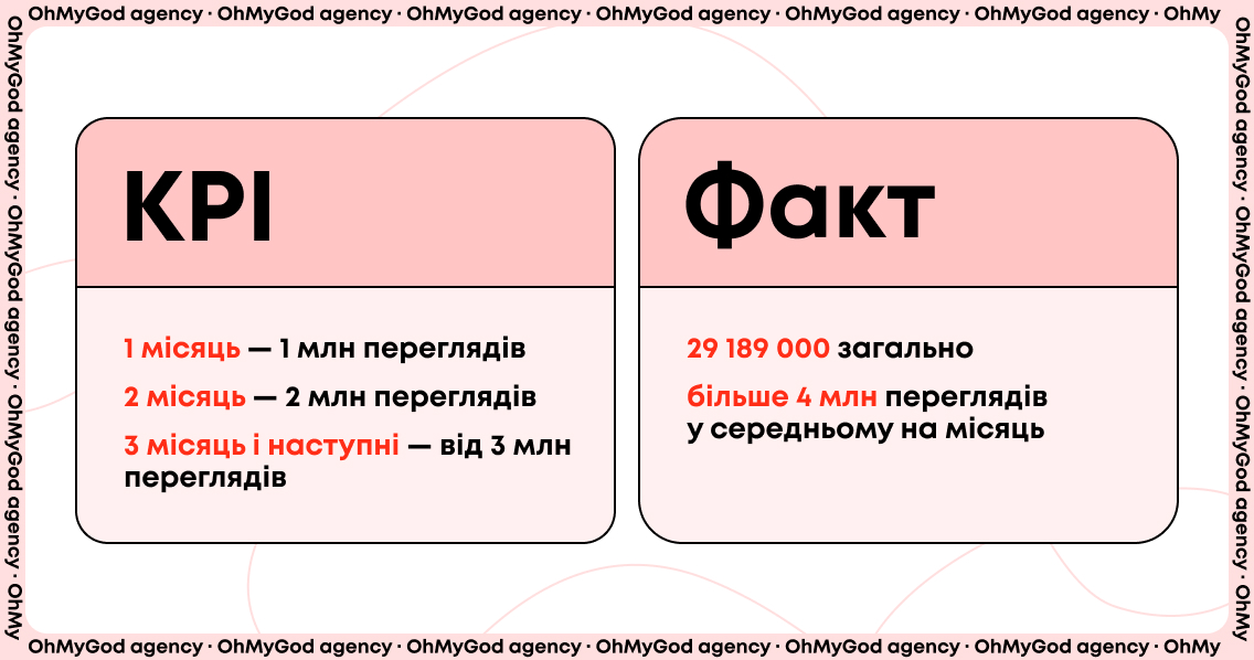 Проаналізувавши, що саме вплинуло на невдалий запуск (знаючи, що контент та формат супер), можна пояснити клієнту ситуації і спробувати через 2–3 тижні ще раз. Що ми і зробили, і цього разу все спрацювало! Через 5 днів із моменту створення акаунту в нас було вже більше 3 млн загальний переглядів.