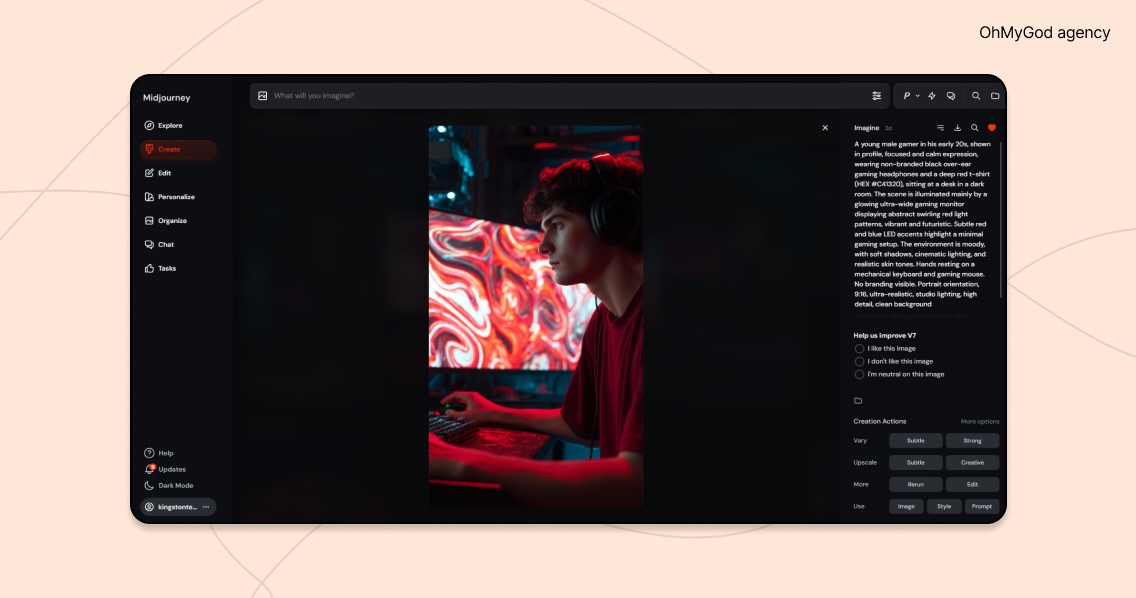 Ми протестили десятки промтів для АІ-застосунків, щоб знайти візуальну формулу Kingston і налаштовувати алгоритми під стиль бренду. Ось кілька наших прикладів, з якими вийшли омайгадні результати: