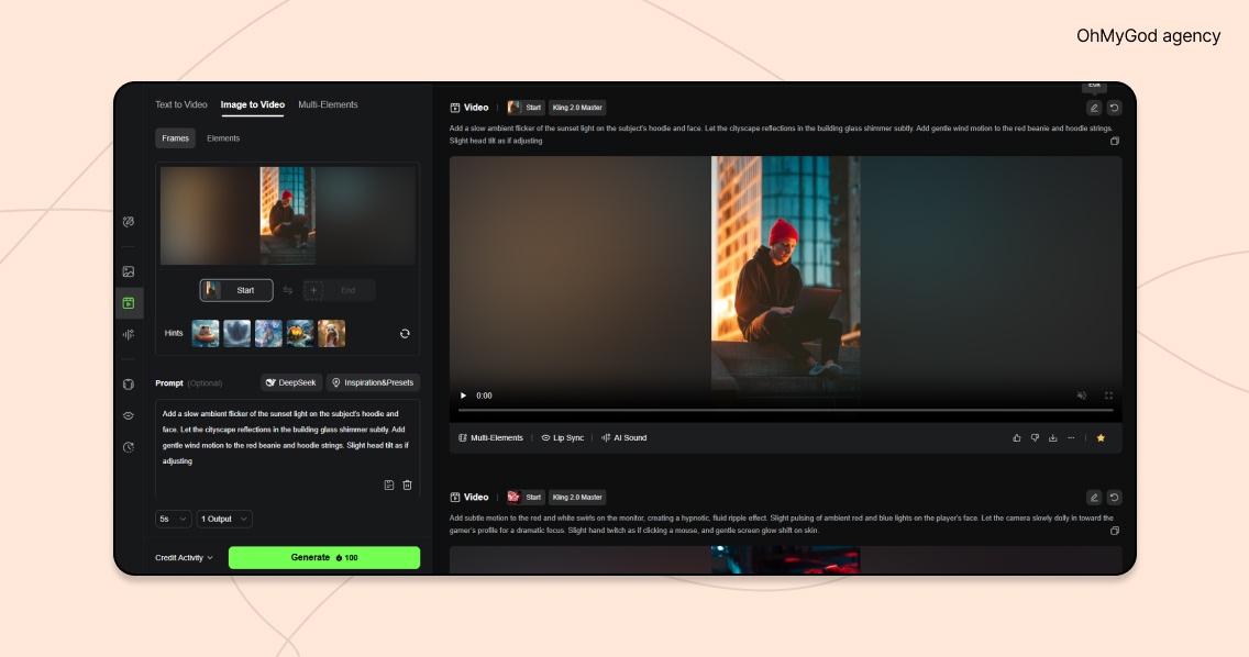 - Kling AI 2.0 — оживляємо кадри, додаємо плавності рухам та саунд-ефекти.