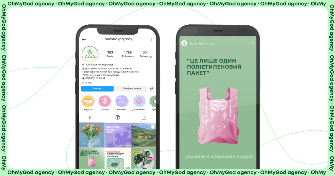Важливою частиною нашого проєкту стало також оновлення Instagram стрічки «Будинку природи». Ми створили нову графічну концепцію, яка активно взаємодіє з аудиторією, підкреслюючи екологічну місію і цікаві події проєкту. Тепер в Instagram можна побачити сучасний та привабливий контент, що відображає всі активності й ініціативи «Будинку природи».