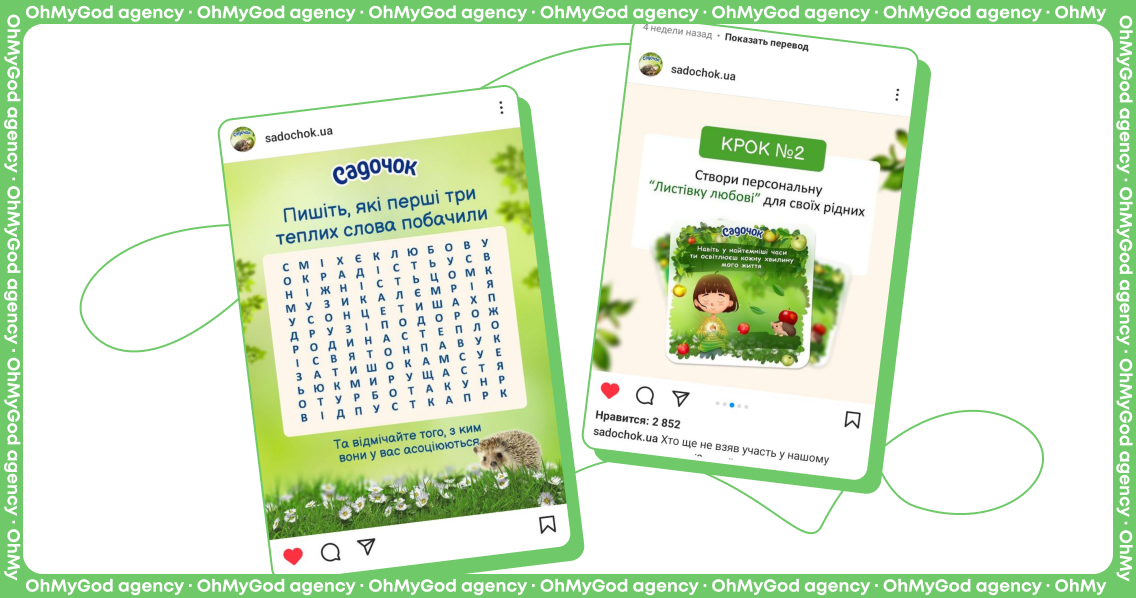 Лише завдяки вдалому поєднанню контенту в соцмережах, інфлюенс-маркетингу та залученню споживачів до активностей «Садочок» зміг зробити кожну листівку зі «Словника любові» частиною свого бренду, а водночас — частиною життя споживачів.