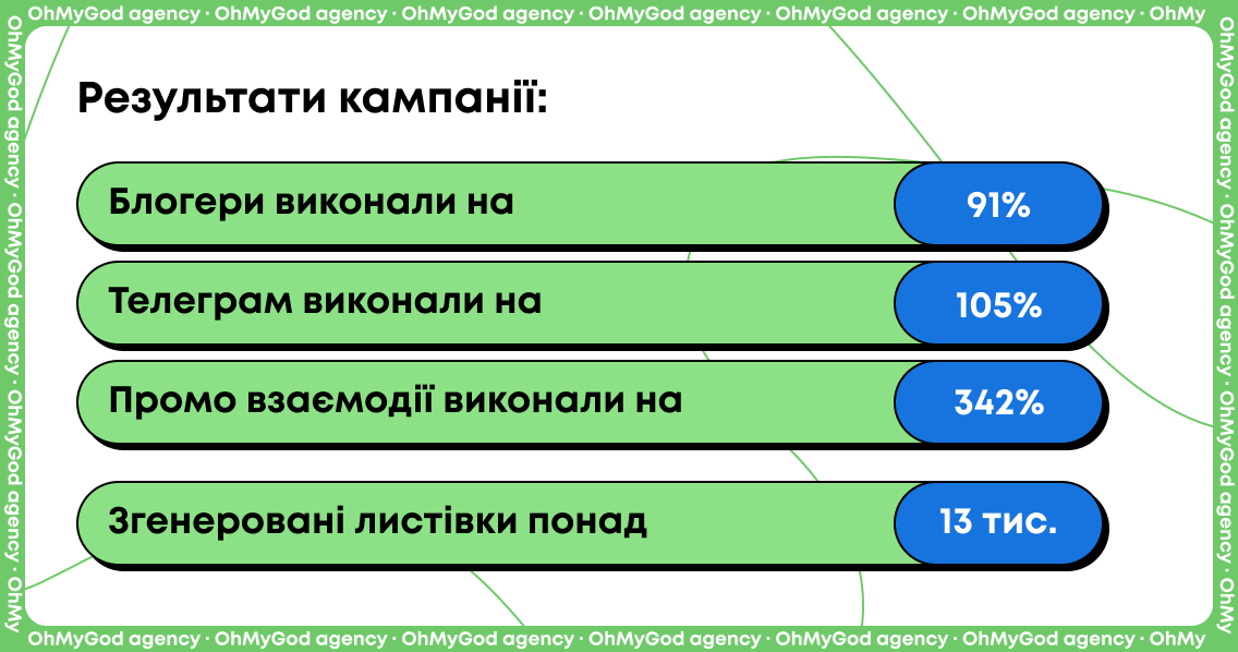 У ході кампанії нам удалося досягти бажаних результатів. Велика кількість переходів на бот і реакцій від аудиторії свідчить про успішний підхід до побудови ефективної комунікації.