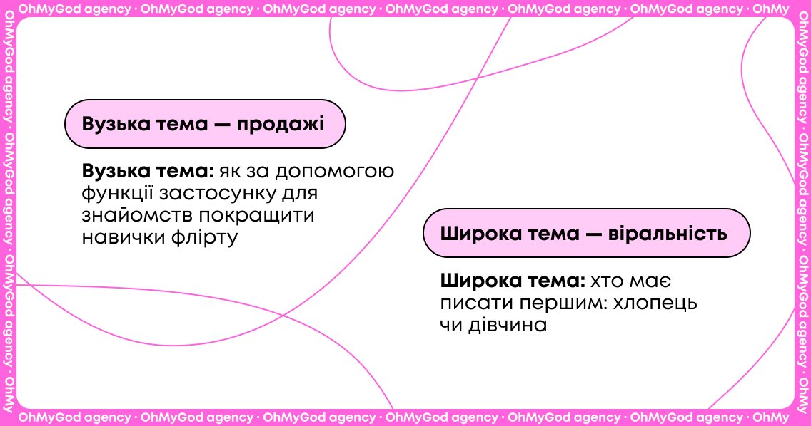 Думка має бути дуже чітка та зрозуміла всім. Для органічних відео обирайте одну або декілька тем, з якими будете працювати, але дуже схожих.