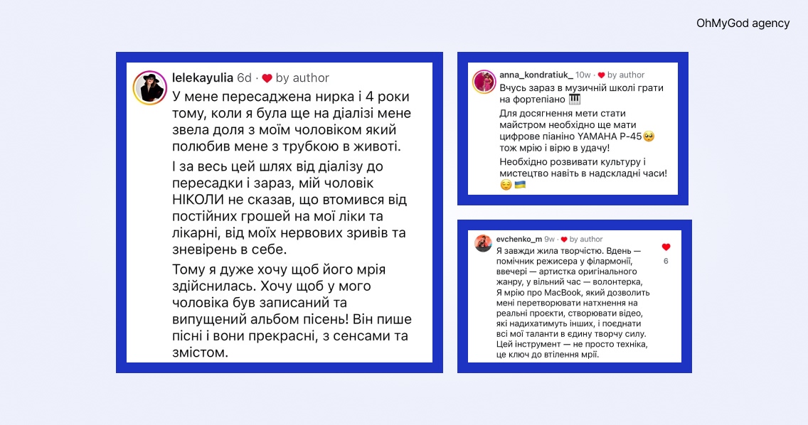 Щоб допомогти учасникам щиро відчути власні прагнення, ми задали вектор: від навчання чи недосяжного хобі до запису власного альбому, видання збірки віршів тощо. А щоб охопити більше ЦА, залучили також інфлюенсерів та офлайн-представників на виставці, які розповідали про конкурс та на власному прикладі показували механіку участі.