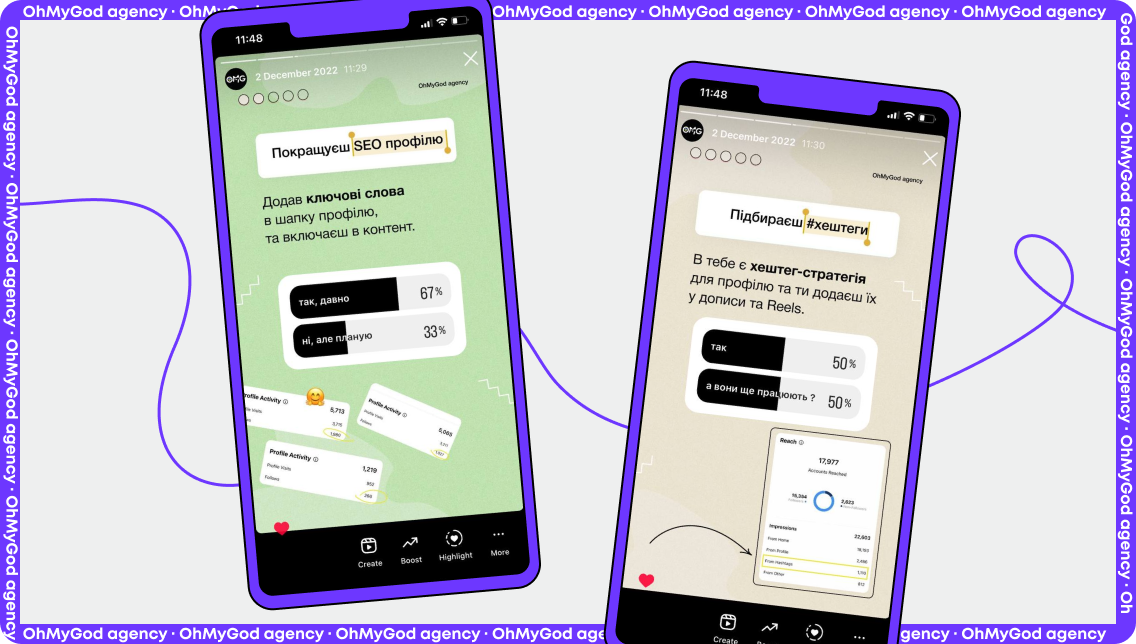 Якщо ви все ще знаходите пробіли в своїй стратегії просування чи болить голова від створення контенту смм-агенція з розвитку Instagram створить унікальну стратегію для вашого бренду: від аудиту до партнерства з інфлюенсерами, до влучної контентної стратегії, що націлена на створення міцного ком’юніті.